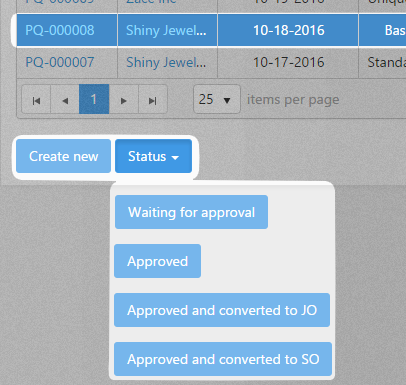 3. Approved and converted to JO : A job order can be created based on an approved price quote by changing its status to Approved and converted to JO.