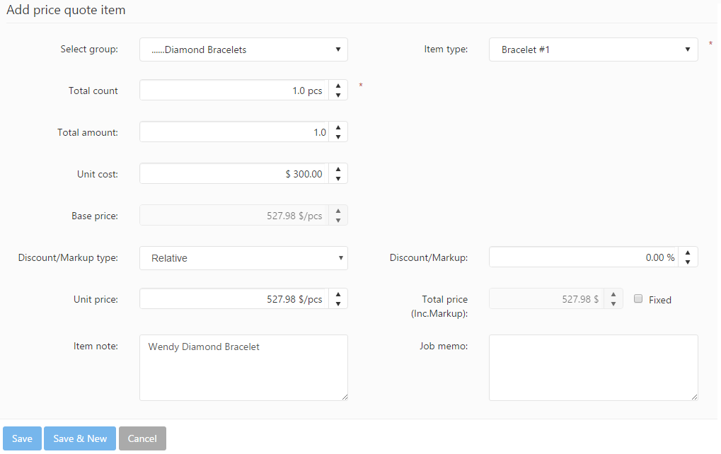 10. Total price (Inc.Markup): This read-only field displays the total price of the items that are going to be added to the price quote.