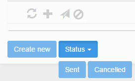 - The Status action allows changing the Purchase Order status from New to Sent or to Cancelled.