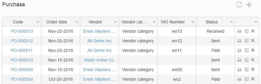This tool is used for keeping track of purchase orders placed in order to replenish inventory item quantities. The Purchasing tool allows managing purchase orders addressed to vendors.