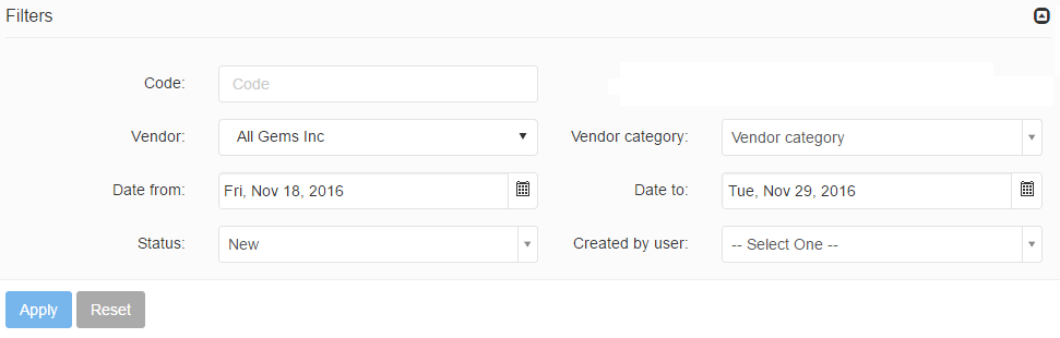 2. Vendor: Using this filters displays POs belonging to the specified vendor.