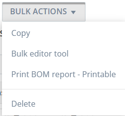 - Print BOM Report: If a printable format is set, generates and prints the Bill of Material (BOM) report for the selected item type(s).